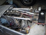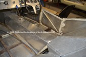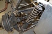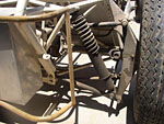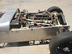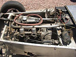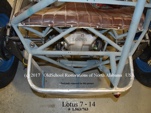 Other than the roll bar added later in the mid to late 60's when they became mandatory, all of the rear frame construction appears to be original to the L563/763 Progress Frame. Of particular note may be the pictures of the IRS rear suspension with early Elite center and 4 link. Back in 2007, David Porter commented about the uprights (bearing carriers) being 'fabricated'. Actually, they are the correct Lotus alloy castings, and I suspect the earlier Bardo pictures that David saw, do not clearly show them.