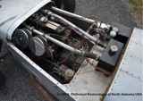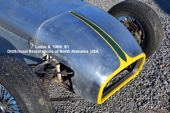 The car still appears pretty much as photographed by Dennis Ortenburger in the 1970's for his book Legend of the Lotus Seven. The frame has been carefully repainted, except for the cockpit area where the Progress Frame Plate is located. We did replace the dash panel completely so we could add new instruments, but retained the original dash without changing it. In the same way, for the track, we designed an appropriate looking race legal custom made fuel bladder from Eagle and a custom built tank that will fit our other race cars, but did this without modifying the Lotus, and saved the original fuel tank as well as maintaining a correct appearance of the car.