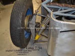 The 7/20 had a Lotus 11 alloy diffcase with inboard disc brakes using Girling AR calipers. I can't see the rear brakes clearly on the Bardo car but it looks as if they might be outboard drum type. [they are drums]