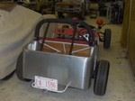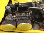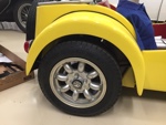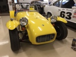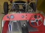 Over the next few years, I did a major skin off restoration including a new 1500 Dave Bean engine. The original wasted 1340 disappeared from my warehouse and I had a good idea where it went, but it didn't seem to matter at the time. I made molds for 8.5" series 2 rear wings to fit the tr10 rear axle and 5" rims with 4.50 racing dunlop tires. By request I also made 9.5" series 2 wings. I got about 90% finished with the restoration and ran out of "gas". Long story short and fast forward to 2008, I sold the car to Jim Downing who has completed the restoration , although I haven't seen the car in about a year. May 2017, a friend of SimpleSevens visits a small car collection, to find SB1167 fully restored!:
