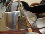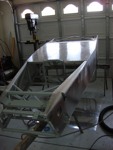 Anyhow, I began the recently finished frame-up rebuild (it's not really a restoration at this point) years ago. I have many, many pictures. I did a solid model drawing of the chassis and had an FEA done to show which areas would benefit the most with reinforcement. At this point all the panel are riveted on. I also increased the thickness of the floor to .060. I used 3/16 structural rivets (overkill, but I work in the aerospace industry so the were available to me) for all the stressed panels and 1/8 for the for the rest. I filled all the old rivet holes (the chassis had apparently been skinned at least twice) and then had it powder coated ANSI 61 gray. Although I bought new "factory" panels a lot of time was spent hand fitting them.