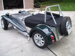 The 7 was stripped of its road gear and used just for autocrossing for several years. I visited DSK back in 1979 and eventually acquired several parts from them including the complete Tom Robertson suspension (see Formula Car Front Suspension Kit (close window to return). I am a little embarrassed to admit that it took years to get around to putting them on, but I have now installed the DSK suspension and other bits and now have it back together for street use and autocrossing.