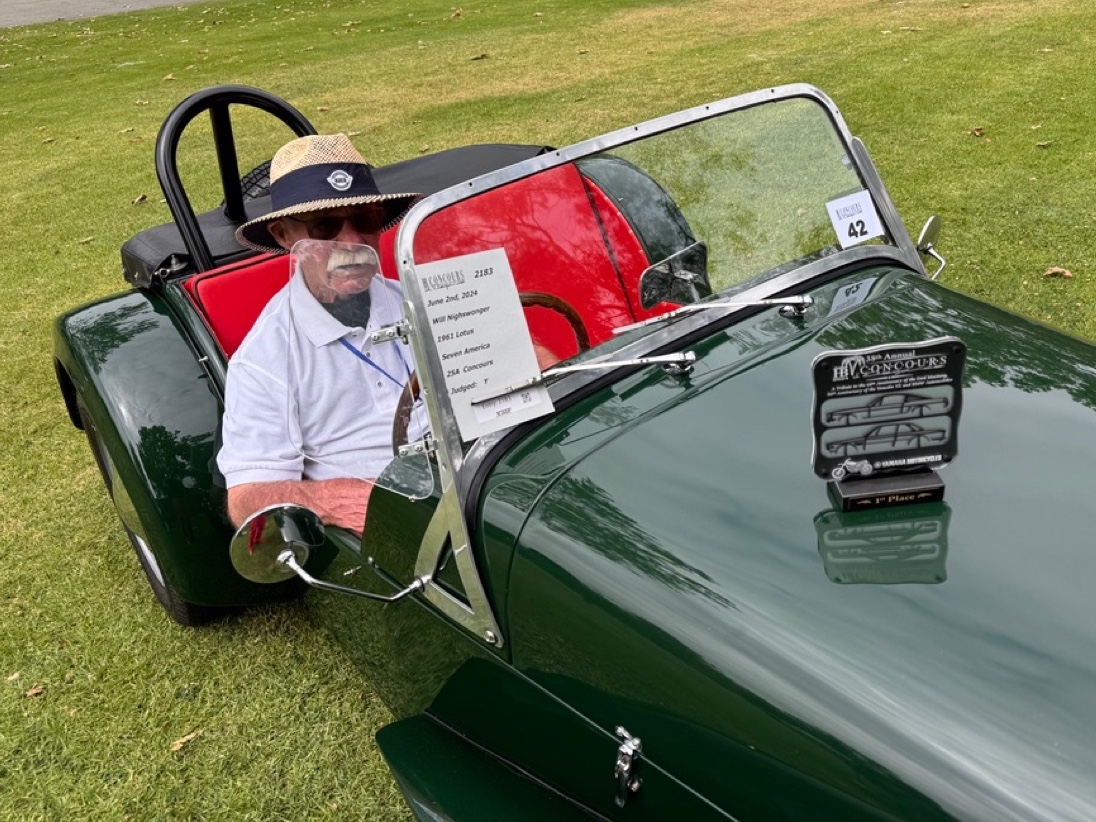 On June 2, 2024, Lotus Seven America 1233 made her debut at the Huntington Beach Concours, winning first in class!