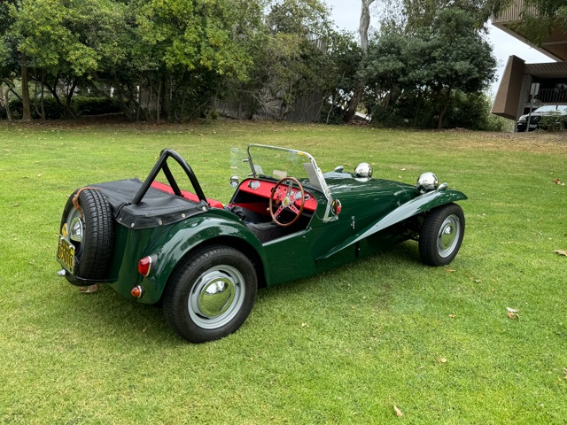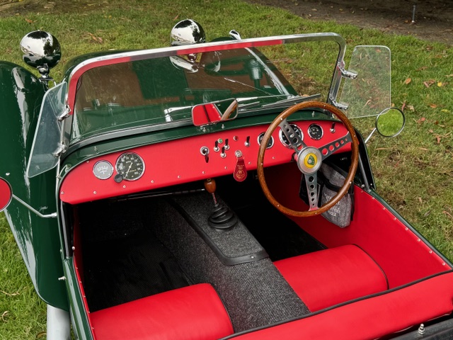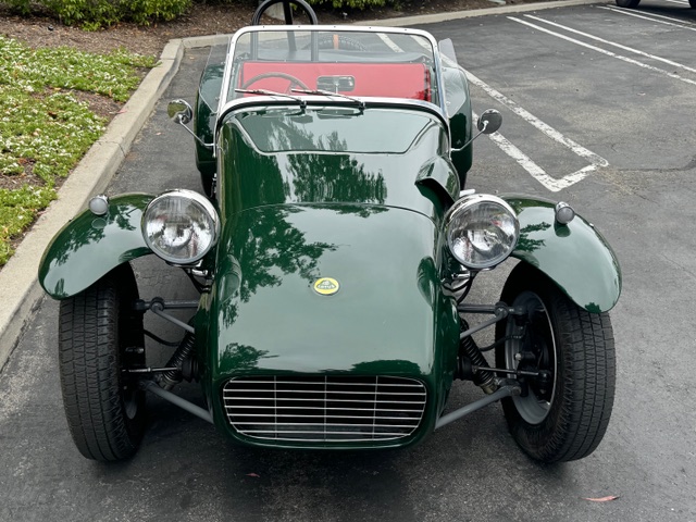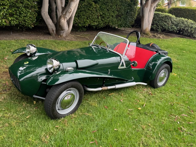 I am the second owner of this 1962 Lotus 7A America. It is right hand drive. According to John Watson at the Lotus Seven Registry in the UK., SB1233 was built in August 1961. It was originally polished Aluminum with Yellow nose and wings. It was delivered to Briggs Enterprises in California. As far as I can tell, this company was not related to Briggs Cunningham who was established in SoCal at the time. This car has always been in Southern California.