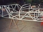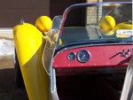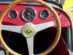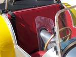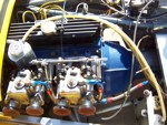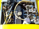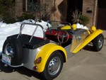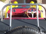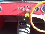 According to the Lotus Seven Register, SB1736 left the works on July 18, 1963 with a Cosworth 1500 engine. "Surprisingly few cars actually have "COSWORTH" engines in the records, although most owners seem to think that theirs is one! This car seems to have been a genuine COSWORTH car!" The DOT Test Certificate from the UK stated that on 19th December, 1977 SB1736 had covered 87,589 miles. The fellow that I purchased it from wasn't a mechanical guy. He took it to the local Shell gas station for some maintenance whereupon they did a few hole shots and broke an axle and tore up the diff. He sent the diff out, a 3:89 of Spitfire origin, to DSK and they rebuilt it and supplied another axle. The diff still has a DSK sticker on it. Realizing he wasn't able to maintain the car himself and neither could the gas station guys, he decided to sell it. I purchased the car in November, 1979 and drove it home, about 160 miles. There was snow on the ground and it was very cold. The driver's side curtain flap's inside snap was broken so I had to hold on to the strap as I drove in order to keep the flap closed. The plan was to sort it out as an autocross car and then move to the next level as a road racer. Well plans change and after driving it during the summer I put it away, yes in a barn in Wisconsin, to recover it as my own "barn find" some 5 years later. After recovering the 7 from its barn I brought it back home on a trailer. Then the rebuild started. Everything that could wear out or rust was worn out or rusted. Starting at the front end, the brake calipers, uprights, trunions, stub axles were beyond saving. All the way to the rear where, when I removed the rear drums, the brake shoe material was solidly rusted onto the drums and came off their metal backing. So the restoration started with a complete replacement of everything. All the suspension hardware is AN spec with either grade 5 or 8 for motor mounts and the like. It came with a down draft Weber and a really nice ported and polished 113E head with some big valves. I just put this head back on last year (2012) during a complete engine rebuild. I did a light refreshing of the engine using the 4 bolt crank and 116E rods with new bearings and rings, a spin on filter high output oil pump, a116E head, new 7 1/2 inch clutch, etc. Apparently it had been hit in the right rear corner and some "butt" butt welded on a rear section but was off by about 1/2 inch too low at the outside which caused the car to be a little darty to drive. I drove it around for a few years in Illinois then shipped it to Ft. Lauderdale, Florida. Well Florida isn't the best place for a 7 -- straight, flat roads and heat -- so I shipped it back after a couple of years. Now I had completely rebuilt all the rolling gear and sorted out most of the bugs but the chassis was in dire need of repair. I had known Pat Prince for a few years and was able to talk him into taking a look at it to see what could be done. After an inspection he suggested replacing the entire rear section and "oh well we're at it" we might as well add; the additional bracing to the chassis, pickup points for seat belts, a rollover bar, heim joints to the frame pickup side of the front track control arms and rear trailing arms, additional bracing for the front lower A arms, a spherical bushing for the rear end A arm (all original the suspension parts were retained), a fuel cell, relocate the battery to the rear, do a reskin, etc. It was a really smooth running project and Pat was terrific to work with. I picked up the CBU in March, 1993 and the work began. I enlisted the aid of my fellow Lotus Corps members which really helped get this project completed. What a great bunch of guys! By this time it was too nice to turn into a race car so going forward it became a "restore to original" goal. As with the rest of the car the fiberglass was in pretty bad shape with some really beat up front wings and incorrect wide rear wings and but the original nose was in fairly good shape. I was able to source new front wings from Curtis in CA, narrow rear wings from Caterham UK and had the nose redone. As the original color was yellow we chose Miata yellow for the fiberglass leaving the body in bare aluminum. I had 2 of the Elan style wheels that came with the car modified for the rear by increasing the backspace which allowed for running Pirelli 165/80 x13 tires with no clearance problems with the narrow rear wings. Recently as the Pirellis were 20 years old and NLA, I decided to go with a set of Vredestein H rated 155/80 13 as their 165/80 were a bit wider than the Pirellis and I would need to take off the rear brakes, wheel cylinders and backing plates to pull out the axels, hopefully knock out the 3/8 inch wheel studs without bending the hubs so I could replace those with 7/16 inch longer ones that "may" fit in the hubs, refit all that stuff, bleed the brakes etc. just so I could get an 1/8 to 5/16 inch spacer in. What a pain -- so I took the easy way out! New uprated front and rear springs with SPAX adjustable spring perches were added. The "bump" adjusters on the shocks are set on the 2nd or 3rd click. The steering rack blocks and bolts were upgraded and a tie in plate installed. We rebuilt the steering rack and bumped steered the suspension. What a difference that made. An old friend and ex-Spitfire racer, Bruce Chandler, did an excellent job with the optimal bump steering, setting up the suspension and chassis alignment. Overall the ride is very secure and not harsh at all, it's just windy! The cardboard interior side panels (yikes) were replaced with aluminum panels and the interior was redone in red with white piping. A new top (hood) was fitted along with a 5 piece tonneau. I acquired a NOS pair of side screens but never mounted them. I added a Smiths chronometric tach, the other gauges are correct and original except for the water temp gauge that came with the car which is a Smiths. We installed a new wiring harness. T