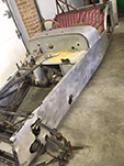 The chassis is sound and straight with only minor surface rust in areas where the original paint has flaked off. The aluminum skin is in good condition and in my estimation should be reused in order to maintain originality. There is a new aluminum hood (bonnet) with the proper S2 side scoop.