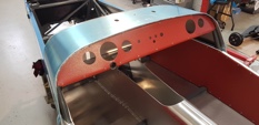The next change was to the interior, after the original red vinyl and foam seats and seat back deteriorated to the point they had to be replaced. I upgraded the seats themselves using moulded foam aircraft seats which are mounted on the original plywood parts. I Then lined the interior with gold coloured carpet just to dress it up a bit.
