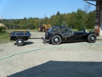 The final change was the addition of a trailer hitch which is bolted to the frame with custom manufactured aluminum clamps. The entire hitch unit is high strength structural aluminum. This was necessary so my wife and I could go on a 2 week vacation, pulling a trailer designed for motorcycles to pull, in which we could carry our luggage, tools etc.