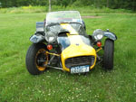 October 2009: I just purchased 1969 S3 SB2366 from Buffalo, New York. She is now happily living in Dana Point, CA. I have also owned Elite 1308 since 1968. 2366 suffered from lack of attention over the years (and I think lived outdoors), so I'm in the process of going through her now to correct the running problems. I must say it is hard to keep from doing a restoration, but 2366 will never be a show car; in my vision she'll be very presentable and the way I like her. She is a fun "rip snorter". October 2009: SOLD Very nice early Series 3 Lotus Seven. Registered in NY as a 1969. Same owner last 16 years. Driven regularly to LOONY events and car shows. Lotus Owners of New York Webmaster sold this car to current owner in 1993. Condition good with a few small issues: speedo does not work, needs speedo cable; tach does not work as it is wired wrong. Full weather equipment, comes with wood steering wheel (current wheel in pictures not included). Reason for selling car is that owner also has the last Series 2 Seven built and wants to devote time and money to restoring that Seven. Very nice Seven. Car is in Buffalo NY. |