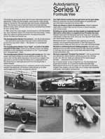 Autodynamics built its reputation and business on the Formula Vee design that carried Ray Caldwell to an SCCA National Championship in 1964. The company manufactured and sold Formula V kits, then added the D-9 Formula Ford, D-10 Super Vee and later the revolutionary D-13 Formula Vee with Zero-roll-stiffness rear suspension.